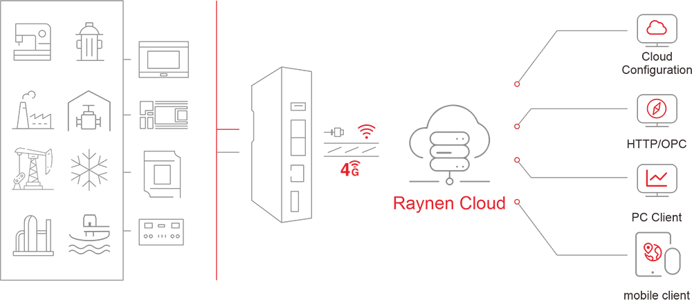 Raynen Cloud は Alibaba Cloud サーバーでホストされ、産業サイトの UBox からデータを受信します。オンサイト データはサーバーに収集され、データの保存と送信が実現され、オンサイト データとリモート クライアント間のデータ インタラクションが提供されます。