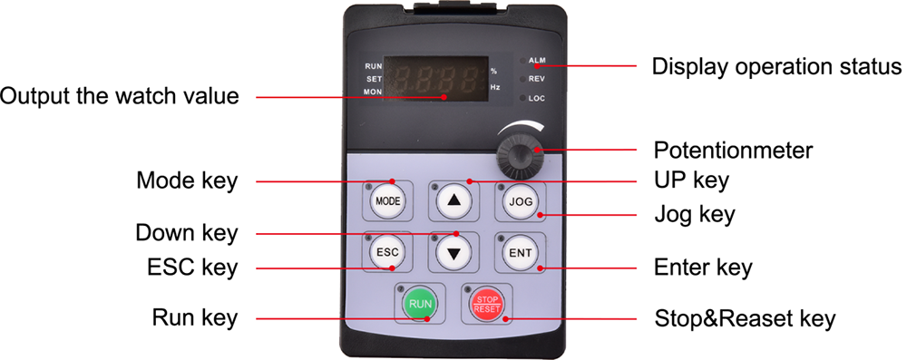 | 周波数設定信号 | 一体型操作パネル | メンブレンスイッチ(ボタン)、スピードノブ(ポテンショメータ) |