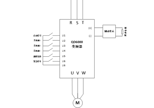 | このシステムでは、22KW遠心機を駆動するためにRVE32 22KWインバータを使用し、インバータの多段速機能を選択することで低速運転、中速運転、高速運転の3速制御を実現しています。外部制動ユニットと制動抵抗器により迅速な停止を実現します。
